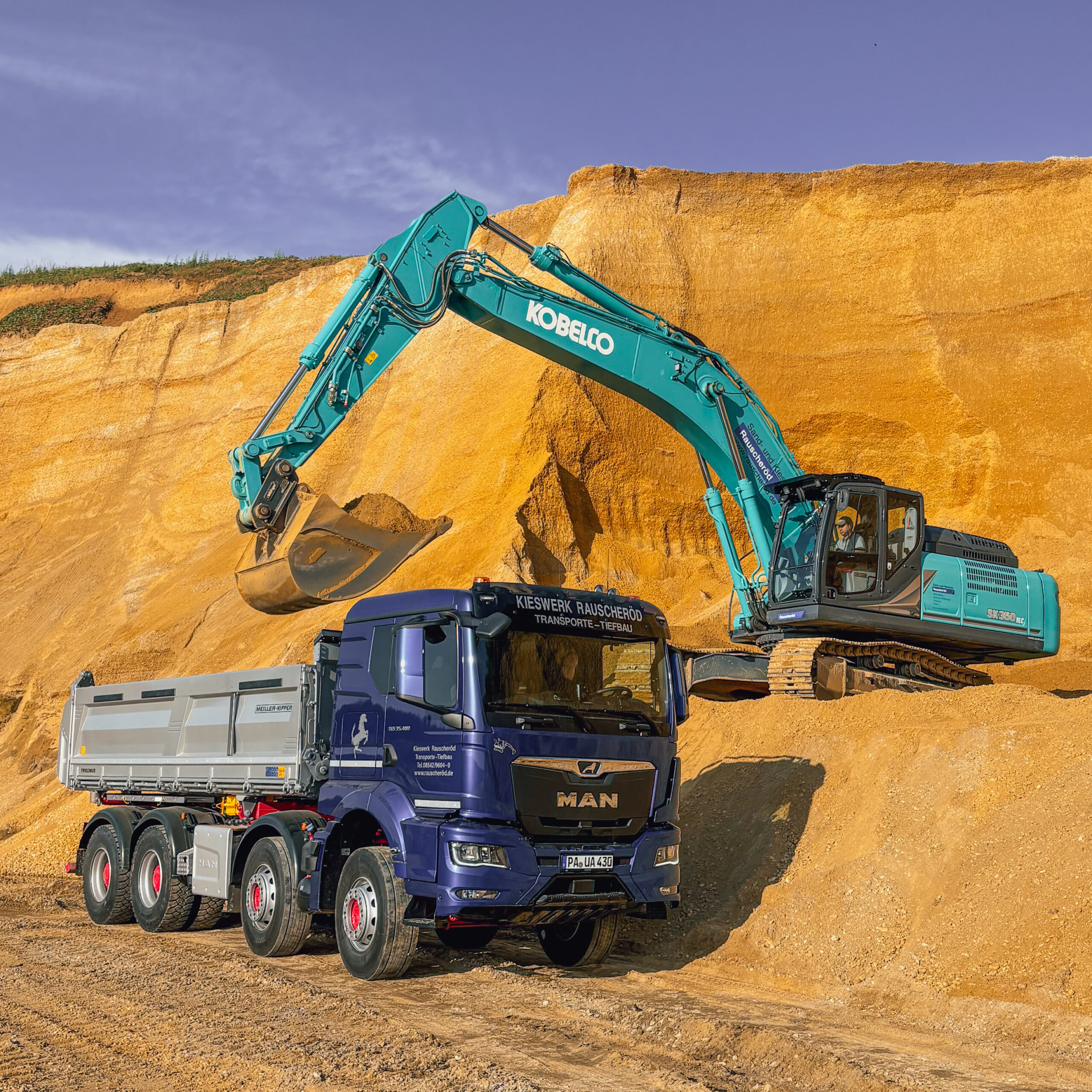für Sand und Kies, Transporte für Schüttgüter, Container, und Schwerlasten, Tiefbau, Abbruch und Recycling und Entsorgung!