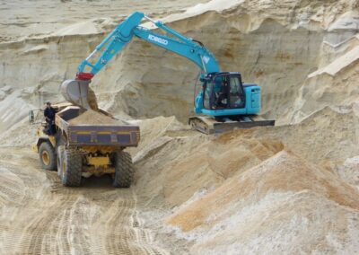 Wir bieten verschiedene Sorten an Sand- und Kiesmaterialien an. Darüber hinaus führen wir verschiedene Granit-, Kalk-, Basalt- oder Quarzgesteine anderer Hersteller sowie Oberboden und Erdreich als Handelsware.
